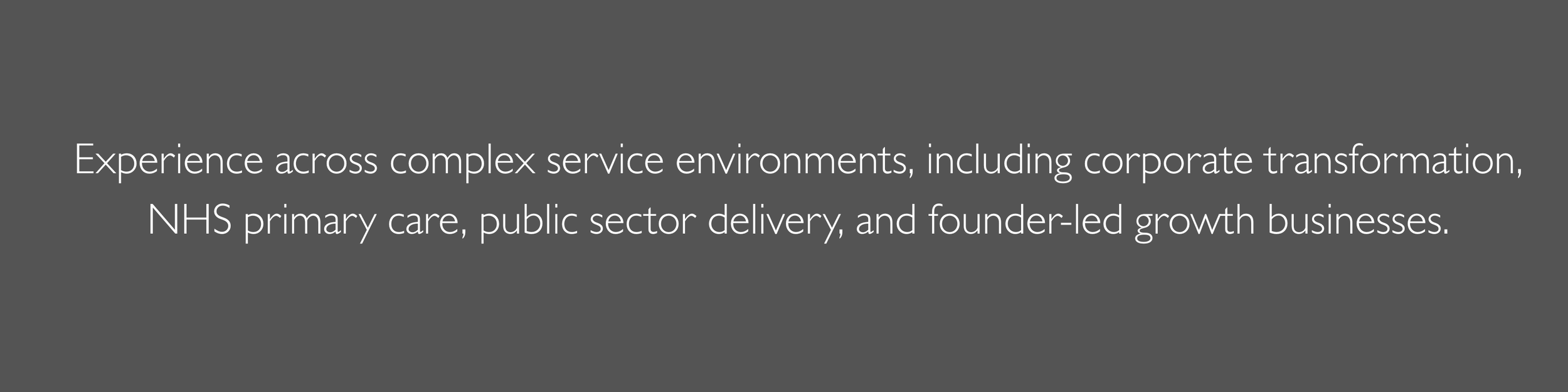 My background includes change leadership, operational improvement, programme delivery, leadership development and transformation support across complex environments, including corporate, public sector, healthcare and innovation-led settings.